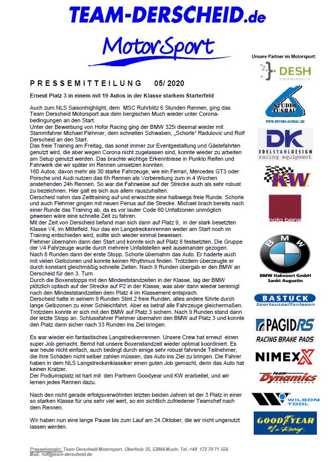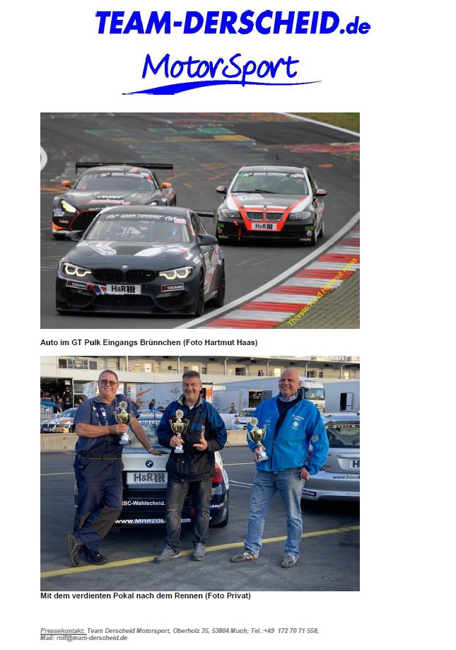 Bilder vom 9. Rennen der VLN / NLS mit unseren Feunden von